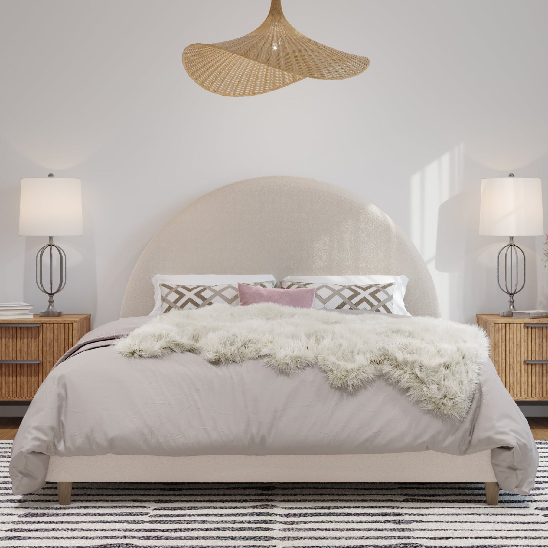 This is the Stella Boucle Arch Bed—a statement piece that’s equal parts style and softness. The chunky arched headboard gives you the perfect spot to lounge, while the allover teddy-textured upholstery adds a layer of comfort that feels like a warm hug. Built on a solid wood platform and finished with plush foam padding, it’s made for slow mornings, late-night scrolls, and everything in between. Thoughtfully designed, effortlessly cozy.